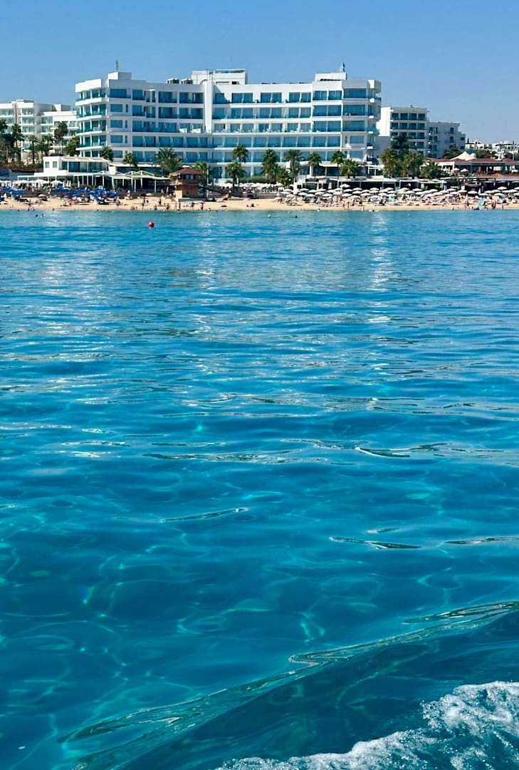 das Vrissaki Beach Hotel von der See aus