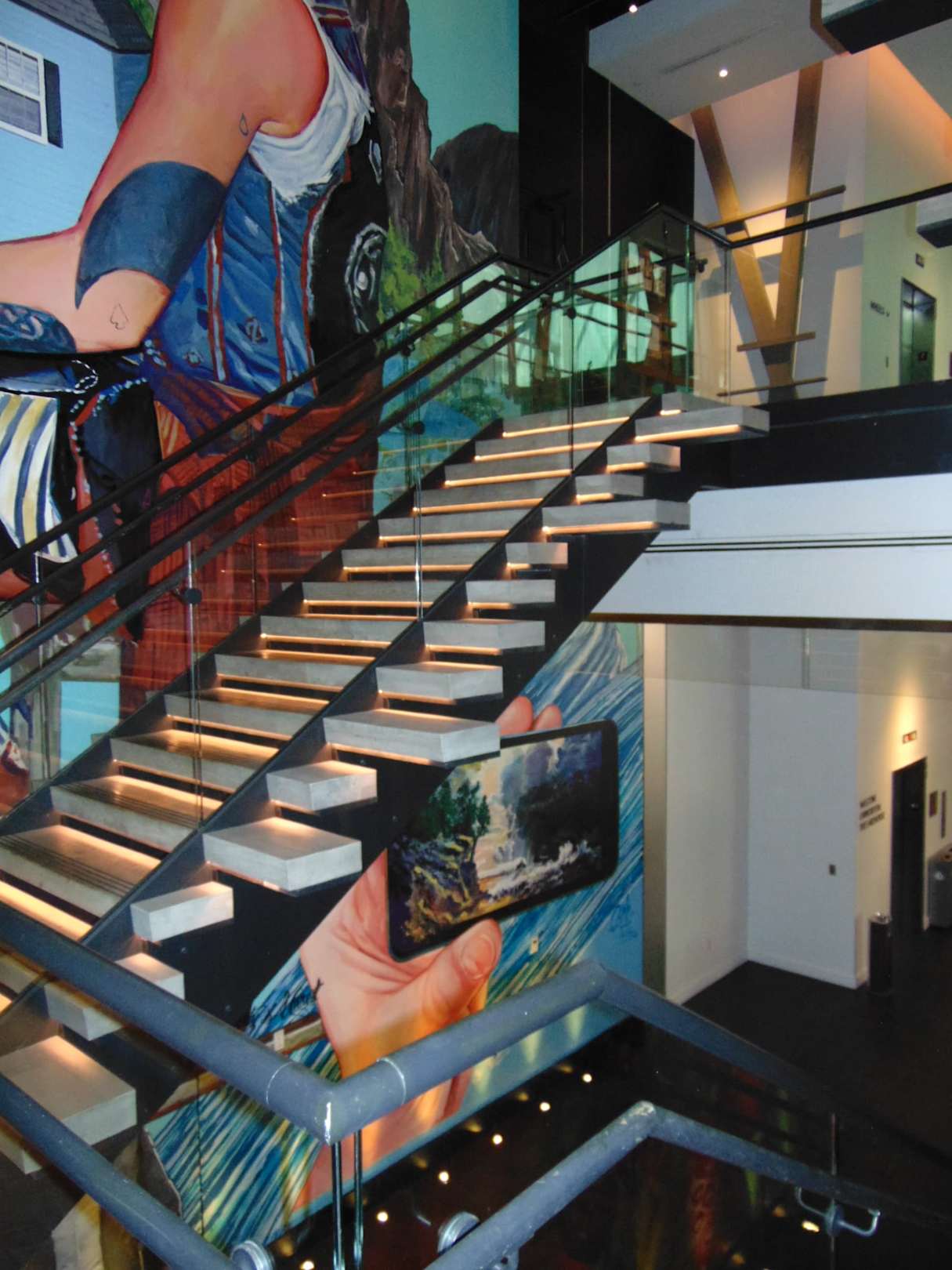 Treppenhaus im Streetart Look auf dem Weg zur Lobby.