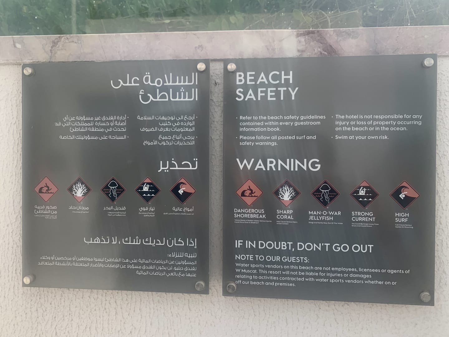Schild zum Strand: „If in doubt- Don‘t go out!“ ... diese Warnung kann man durchaus ernst nehmen, denn der Strandabschnitt des Hotels ist eine elende und verdreckte Zumutung!