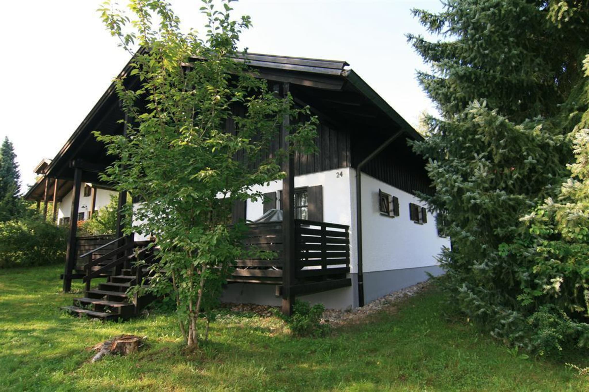 Blick auf die Terrasse vom eigenen Gartengrundstück Waldferiendorf Regen