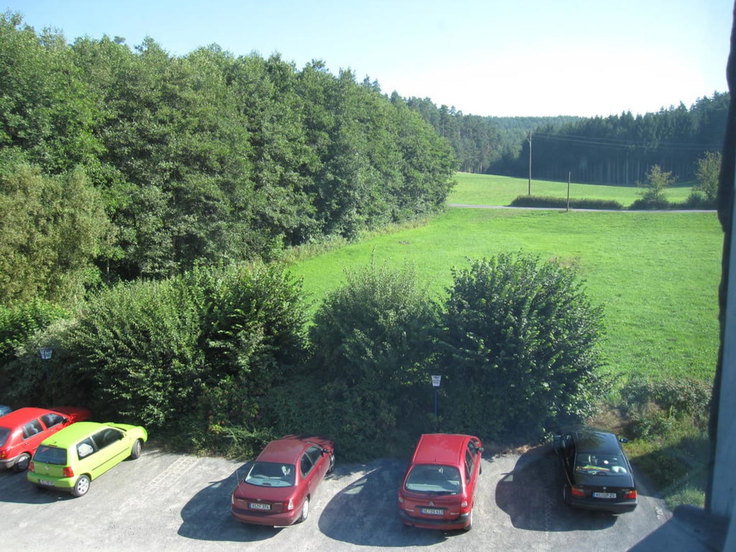Blick auf jede Menge GrünSo schauten wir aus unserem Hotelzimmer. Man sieht: Das Waldhotel liegt wirklich mitten im Grünen.