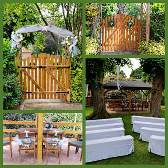 ...der Hotelgarten von "Wegeners Landhaus" vorbereitet für eine Trauung ...
