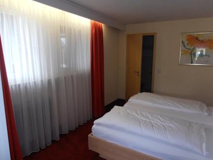 Schlafzimmer, hinter der Tür ist das Bad  Weinhotel Pfeffer & Salz
