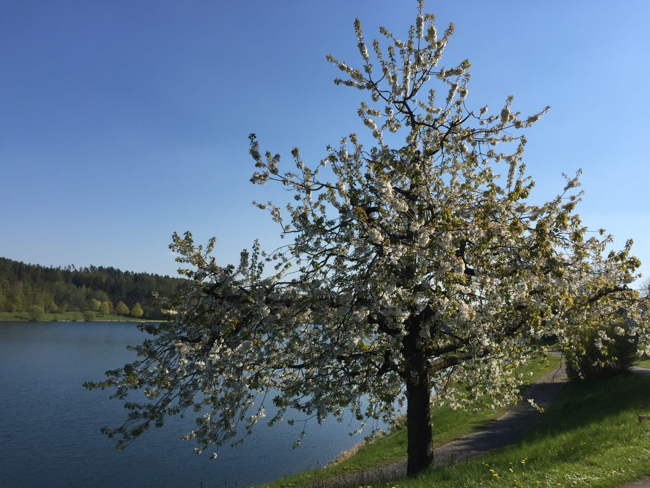 Apfelblüte am See