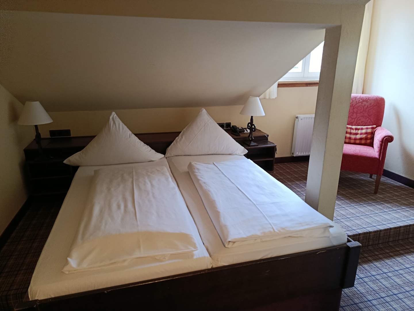 Sehr unvorteilhaft mit Stufe im Zimmer und Dachschräge