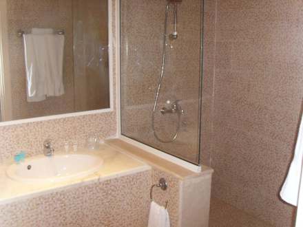 Das schicke Bad mit der moderne freien Dusche