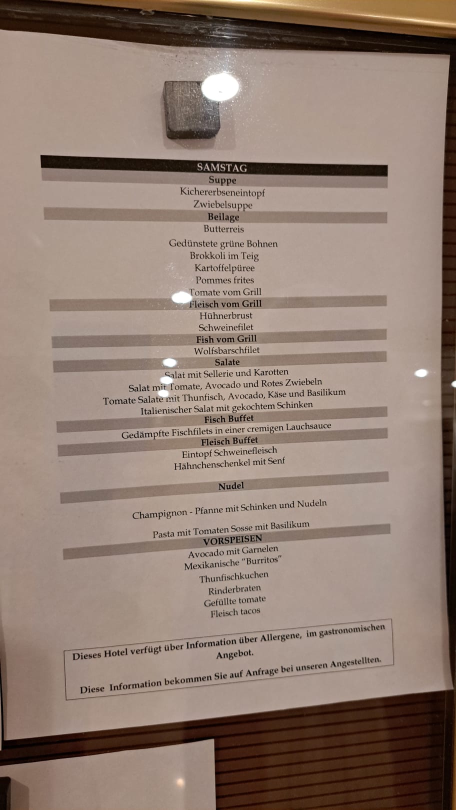 Beispiel des Buffet-Menüs vom Samstag