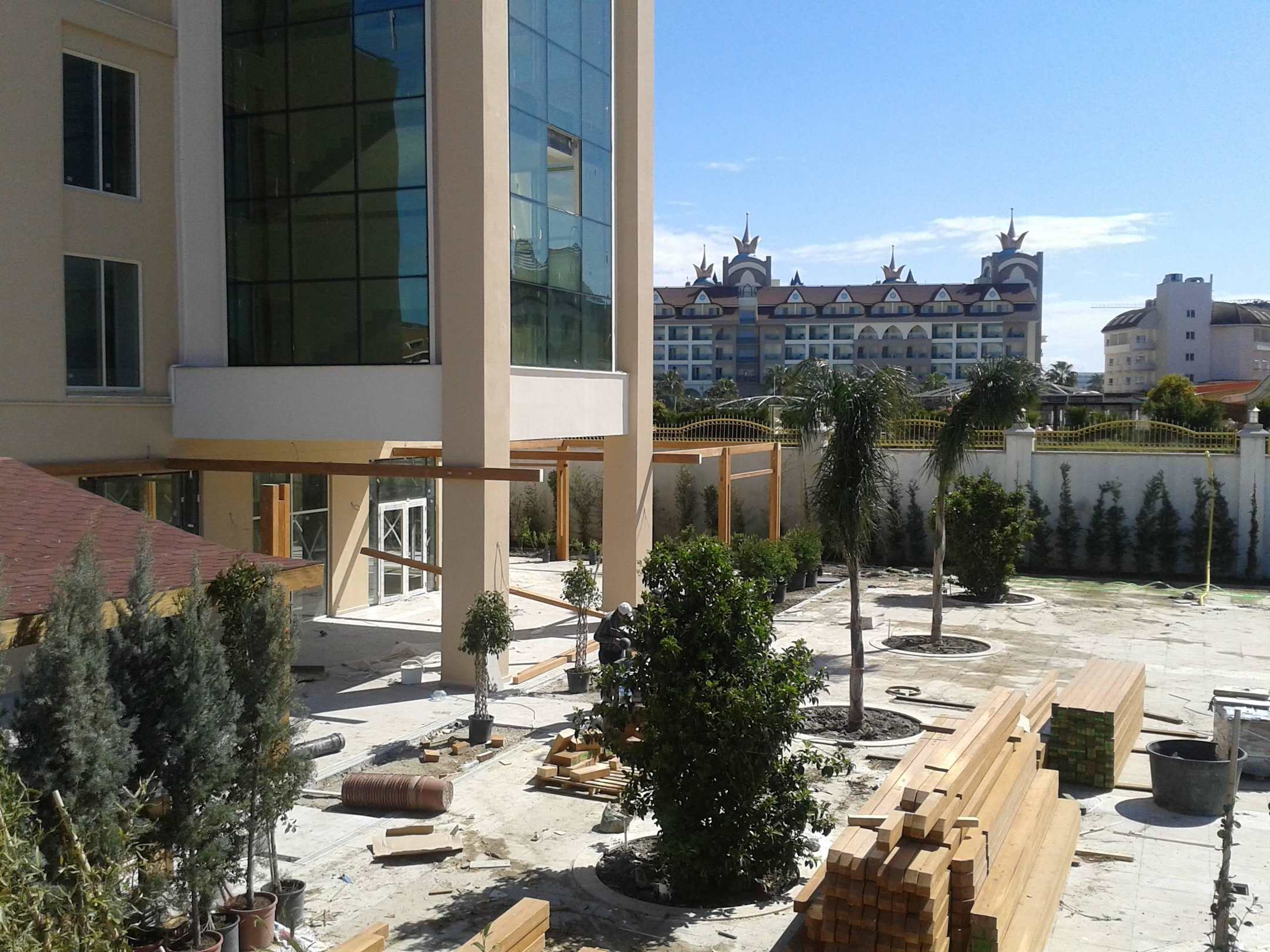 Die Außenpergola wird auch schon gesetzt