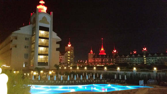 Bei Nacht sah die Poolanlage schöner aus