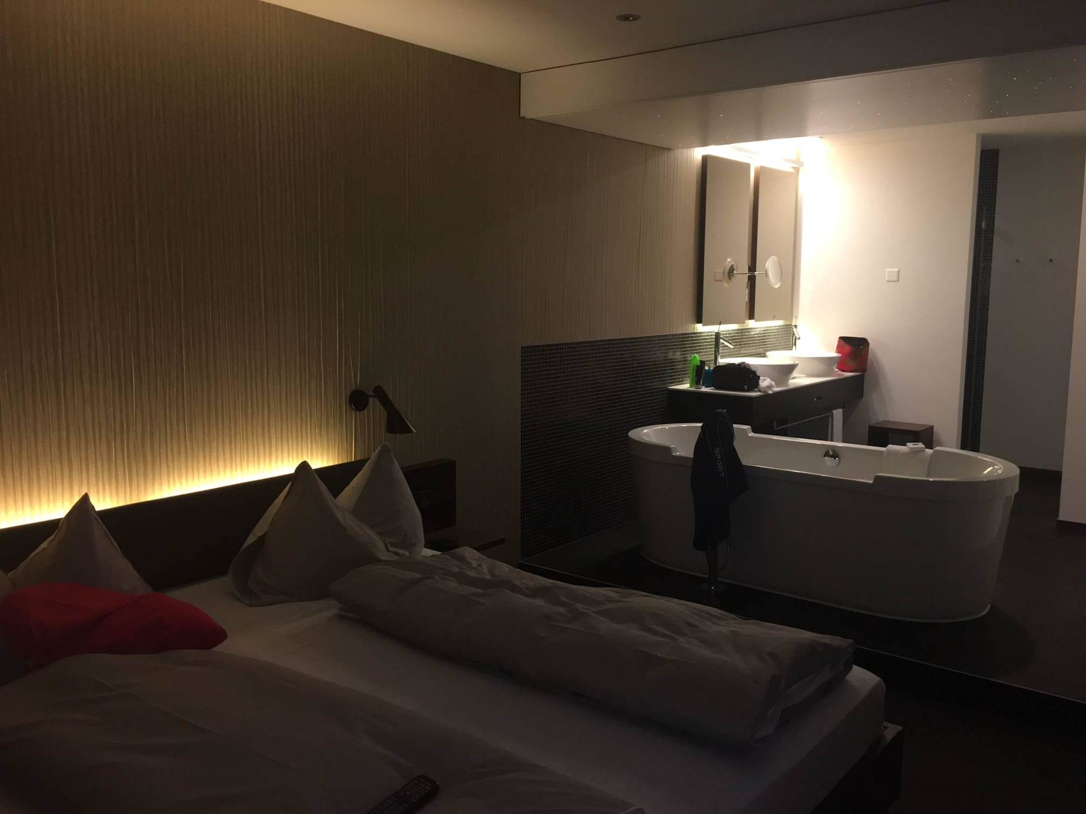 Schlafzimmer mit Badwanne