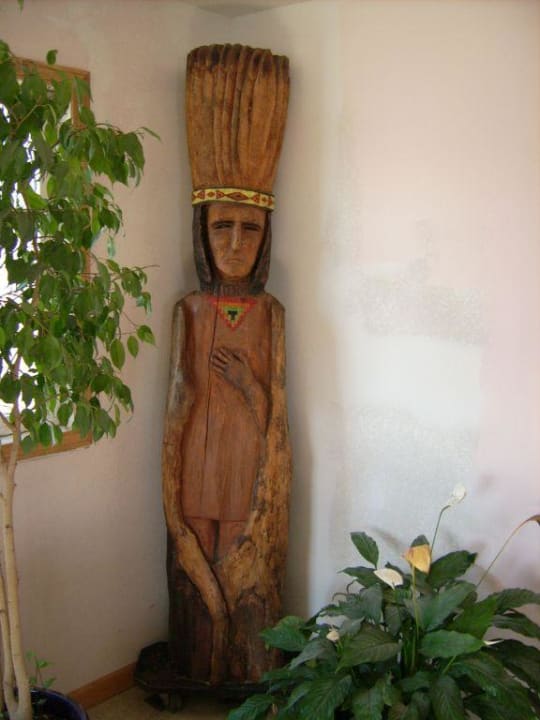 Eine Holzskulptur eines Blackfoot Häuptling ziert das Office