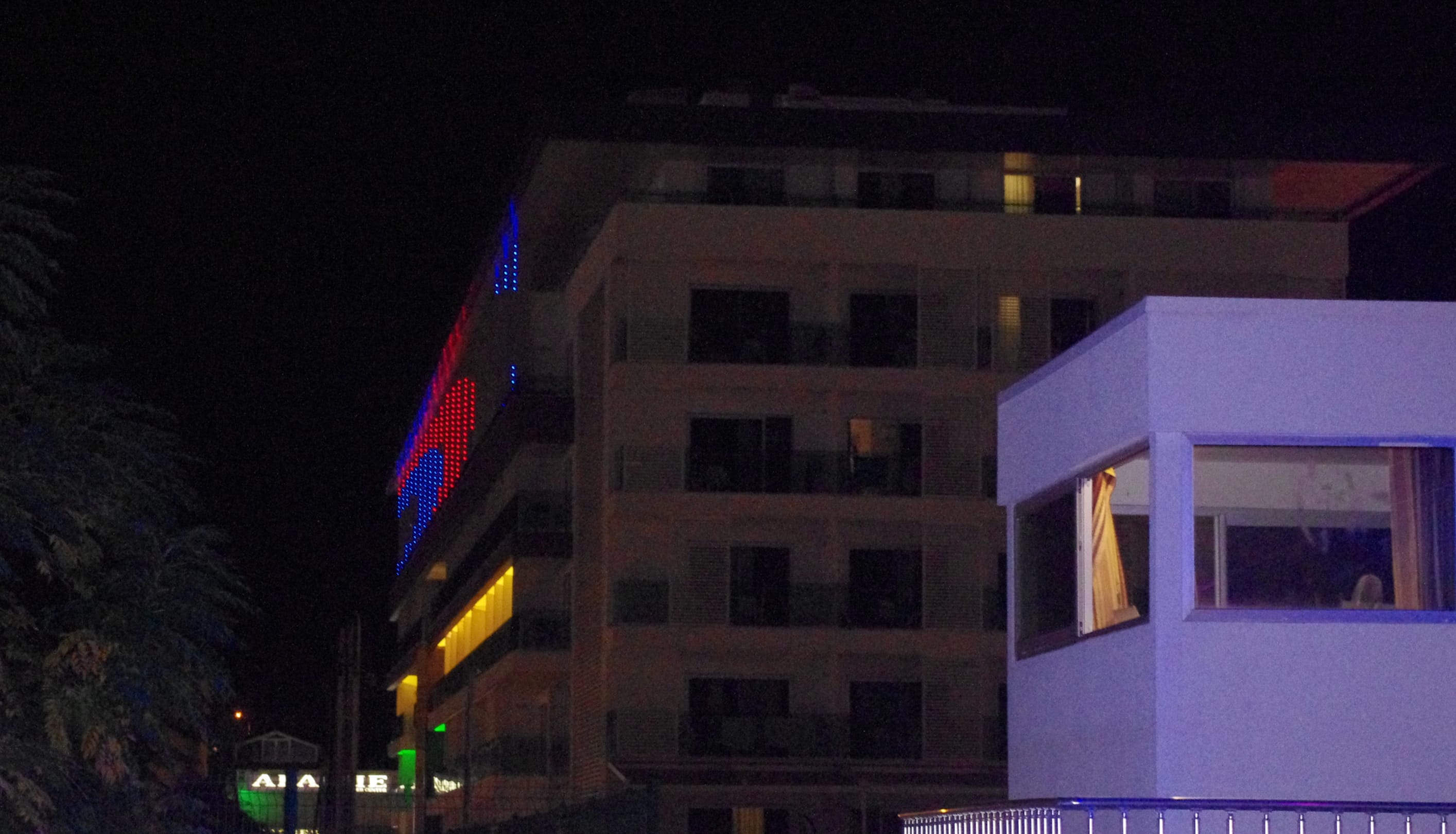 Abendbeleuchtung des Gebäudes