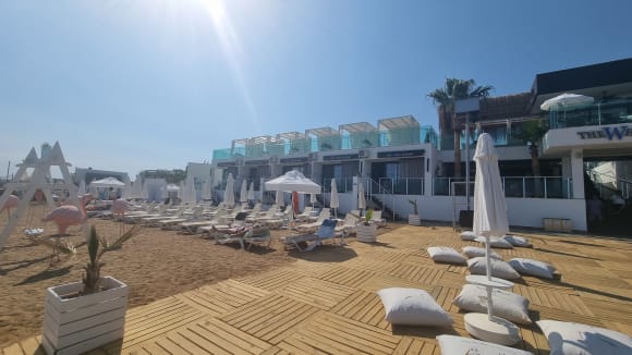 Sicht vom Badesteg auf den linken, hinteren Teil des Hotels