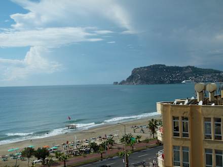 Blick vom Zimmer auf den Strand