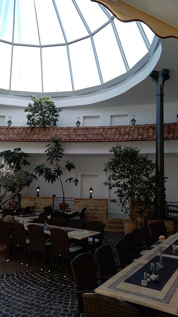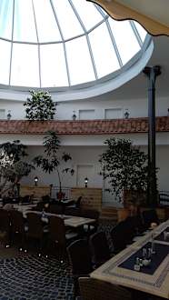 Wunderbarer Gastraum mit einem Glasdach