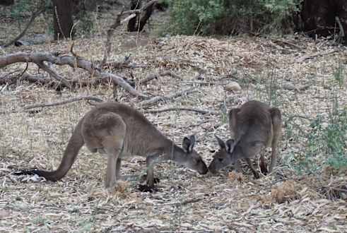 Kängurus direkt vor dem Hotel