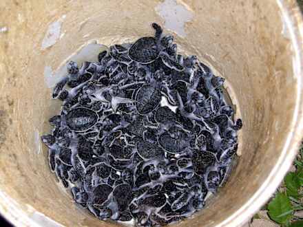 Die frisch geschlpüften Babyturtels werden aufgepäppelt und dann ins Meer entlassen.