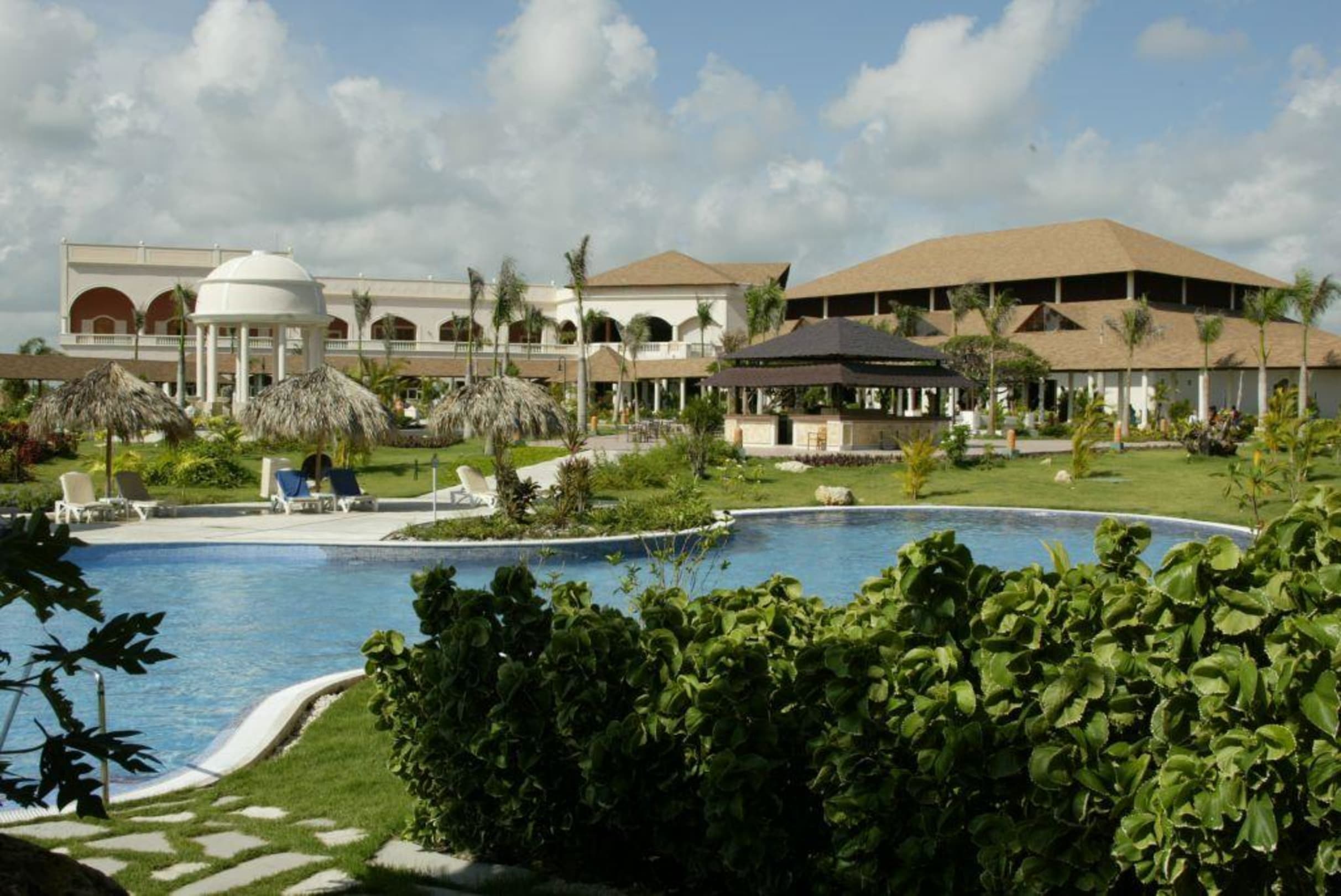 Blick ueber den Pool zum Hauptgebaeude