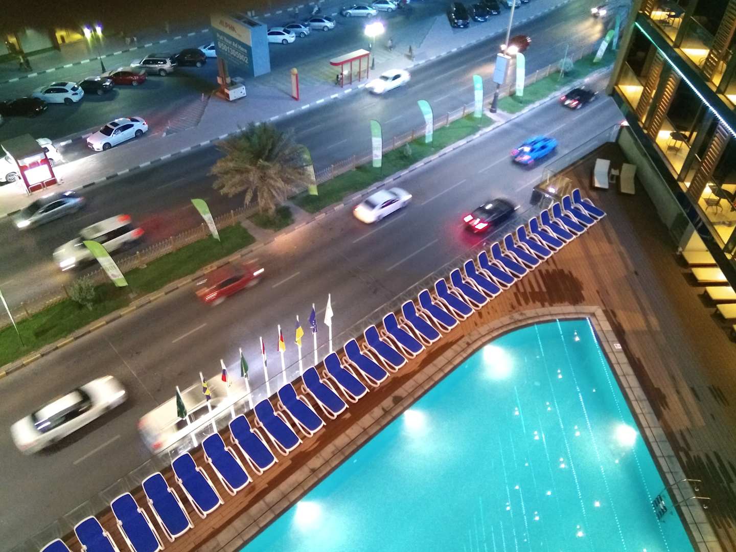 Verkehrslärm und Autoabgase am Pool, rund um die Uhr.