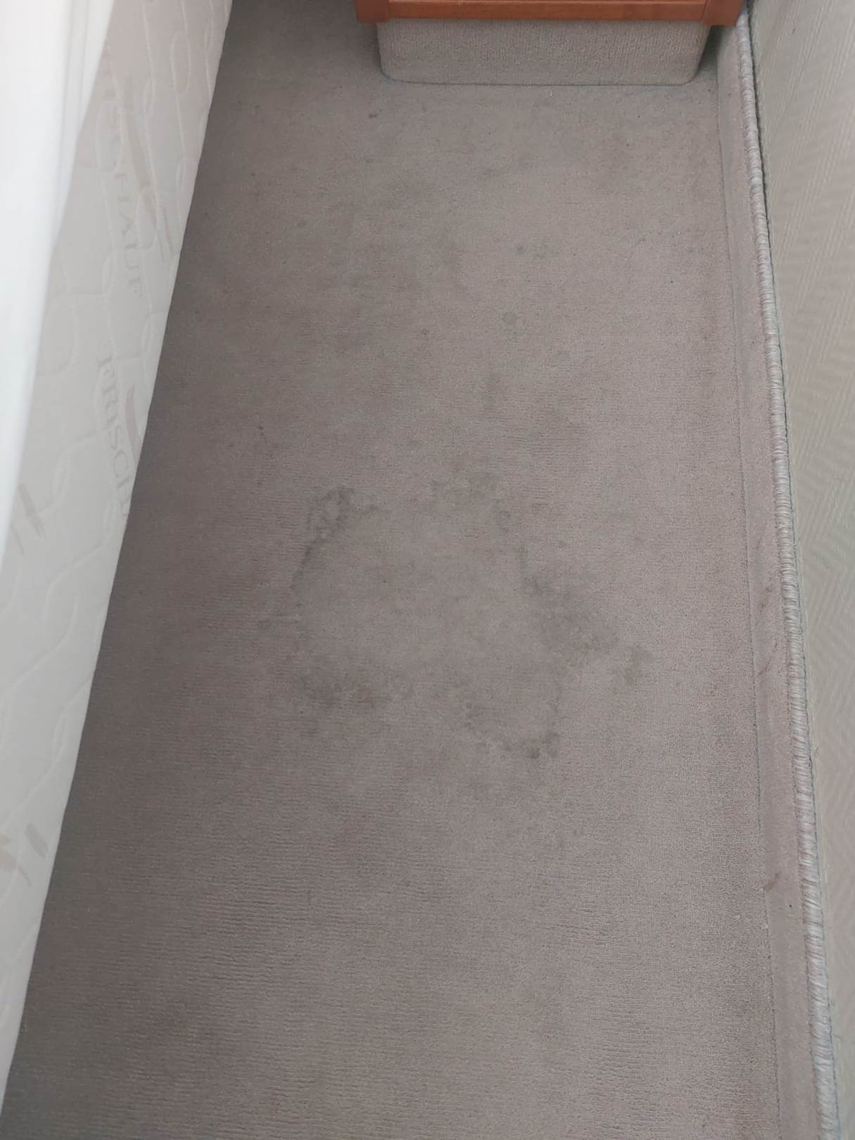 Riesen Fleck auf sem Teppich direkt neben dem Bett