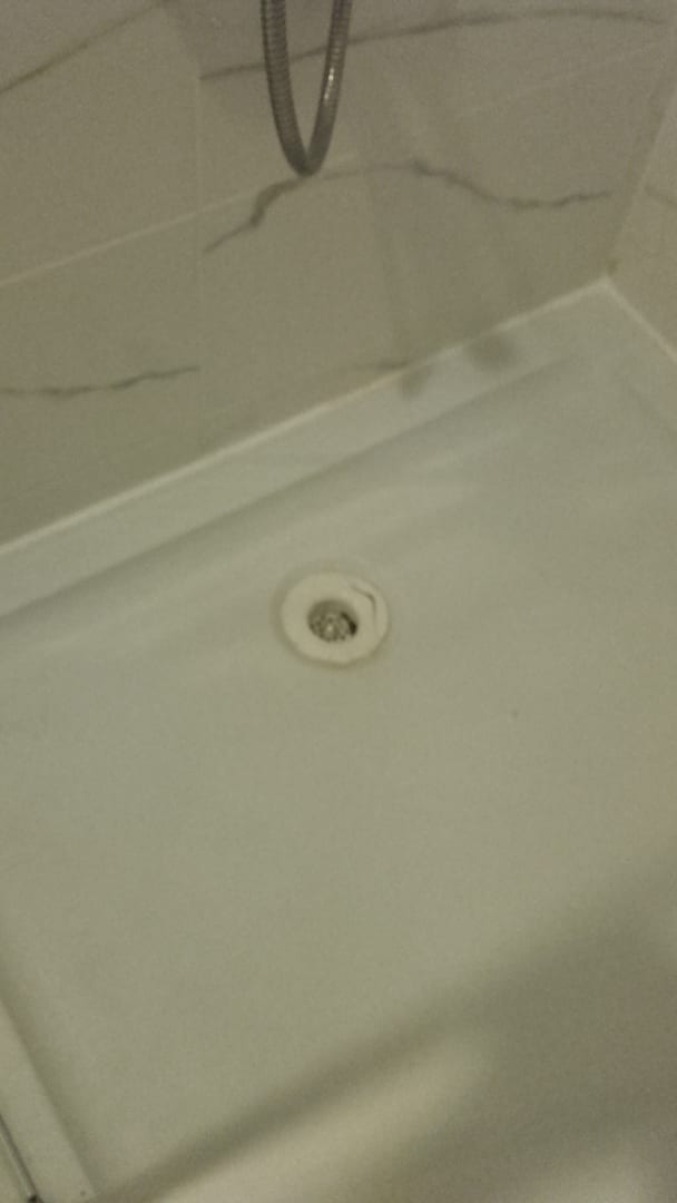 ZimmerDefekte Dusche/Siphon Wasser tritt unterhalb aus, trotz Reklamation über die ganze Aufenthaltsdauer nicht instandgesetzt.