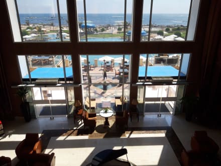 Ausblick von der Lobby auf Pool u Meer