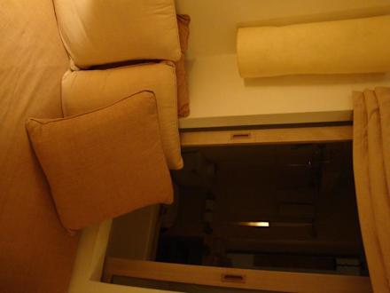 Zimmer 435Blick ins Bad. Im Vordergrund sieht man eine zusätzliches Sofa.