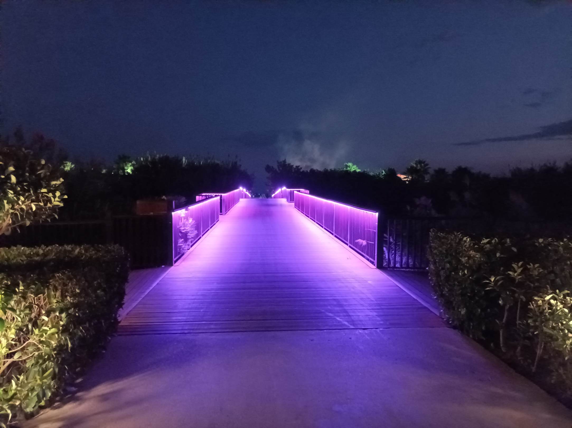 Brücke bei Nacht über den Fluss zum Strand