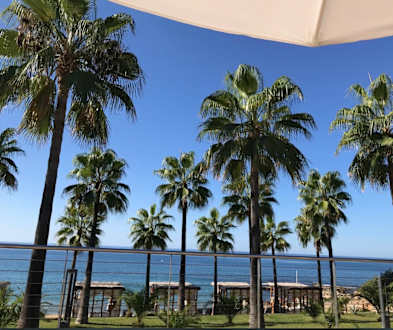 Der Blick vom Pool aufs Meer