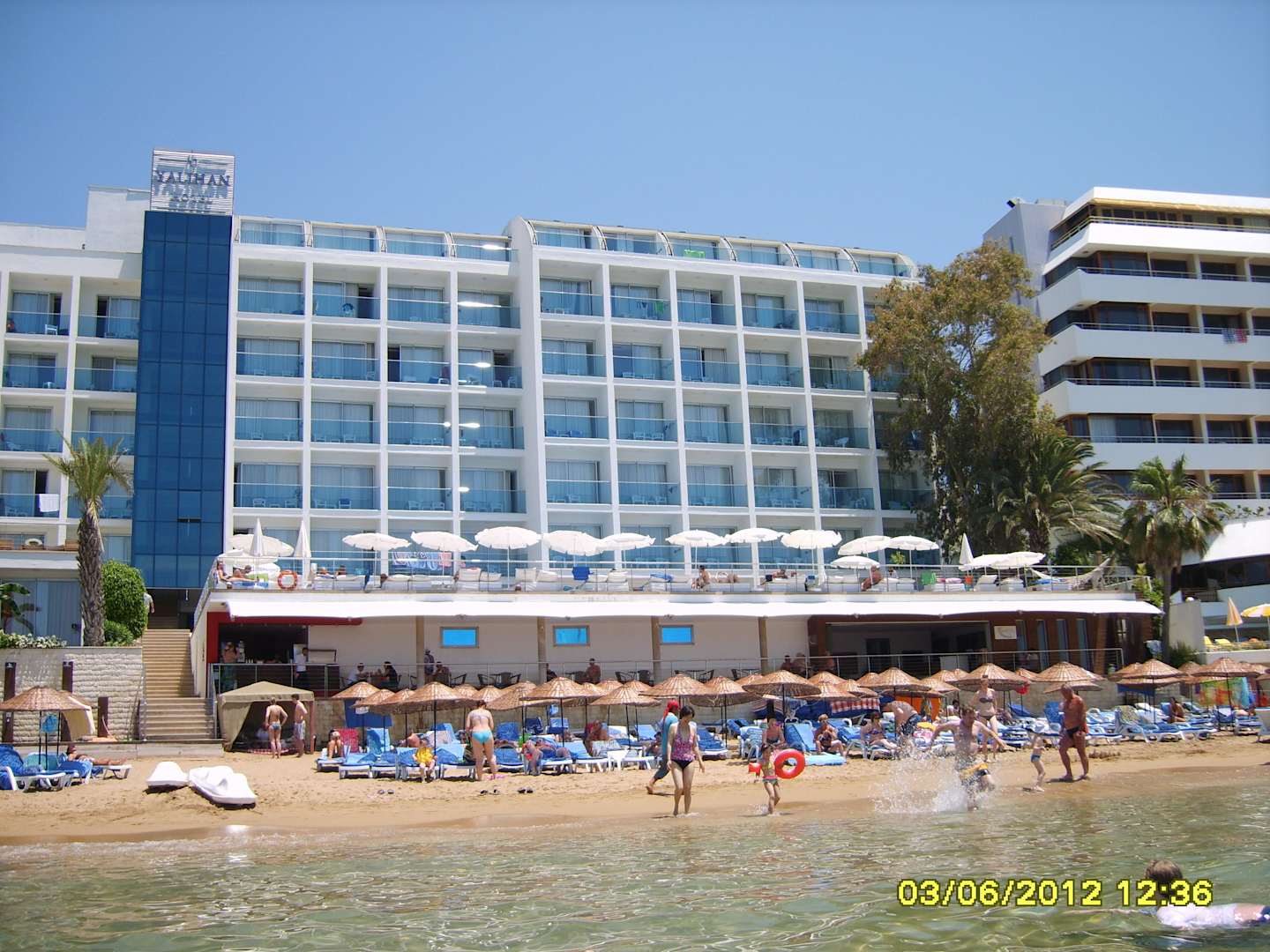 Blick vom Meer aufs Hotel