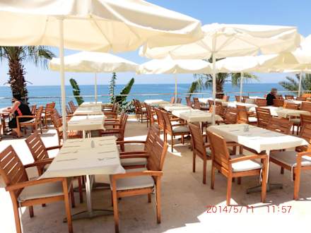 Terrasse/Mediterrace Barna,sieht das nicht gut aus?,die täglichen Mahlzeiten haben wir bei gutem Wetter hier verzehrt,mit schönen Ausblick auf´s Meer!