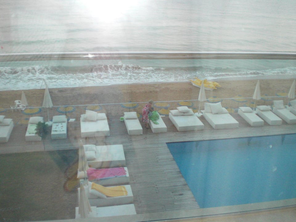Pool und Strand vom Zimmer aus