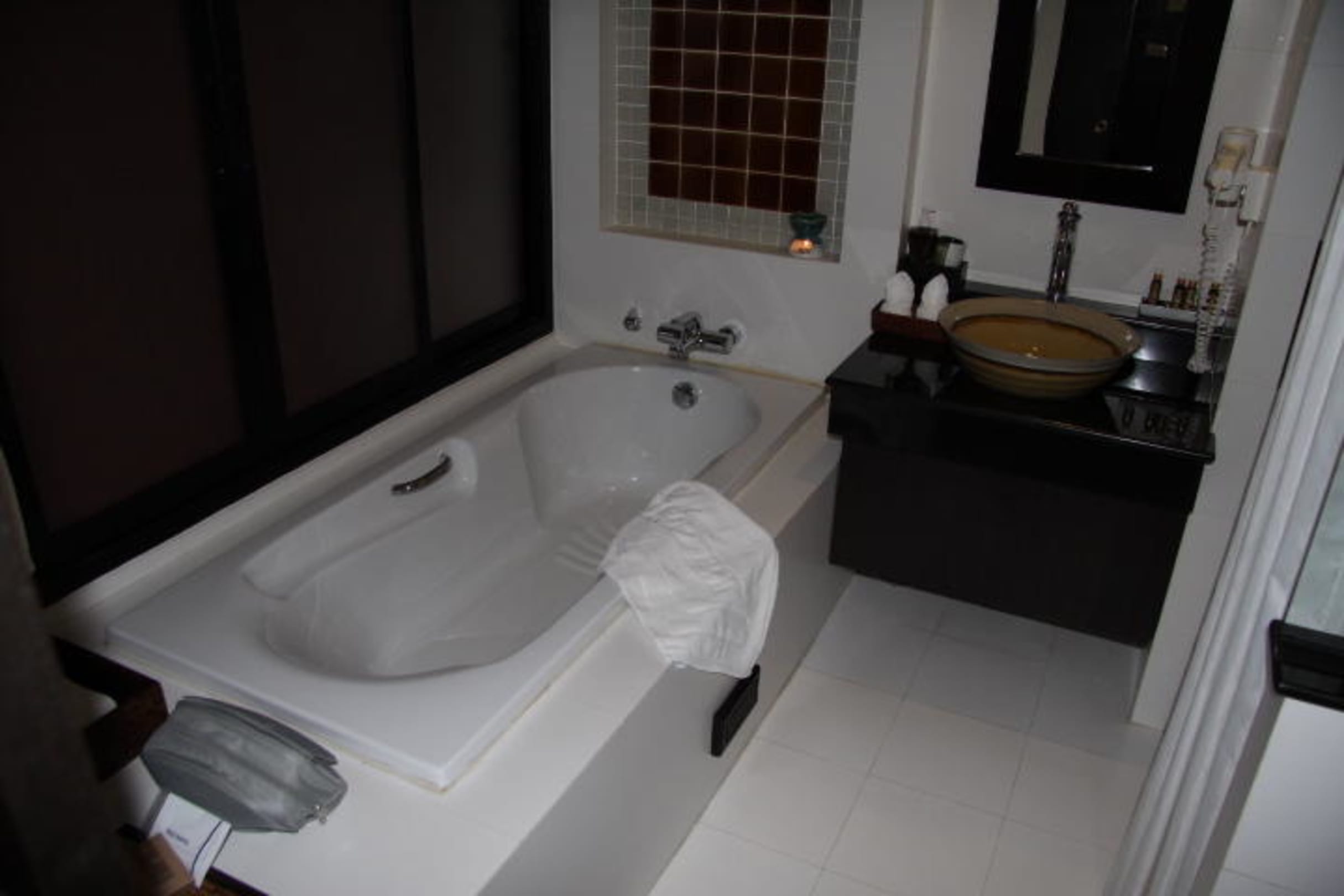 BadezimmerBadezimmer - hier die Badewanne (die Holzwand hinter der Badewanne kann beiseite geschoben werden).