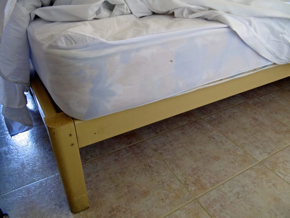 BettBett ein loses Holzgestell mit kaputter Matratze, rutscht auseinander bei der kleinsten Bewegung, Federn der Matratze deutlich spürbar..