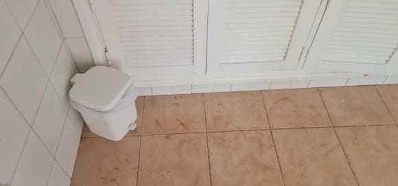 Toilette am Pool, dreckig / defekt / voll mit Pipi überall