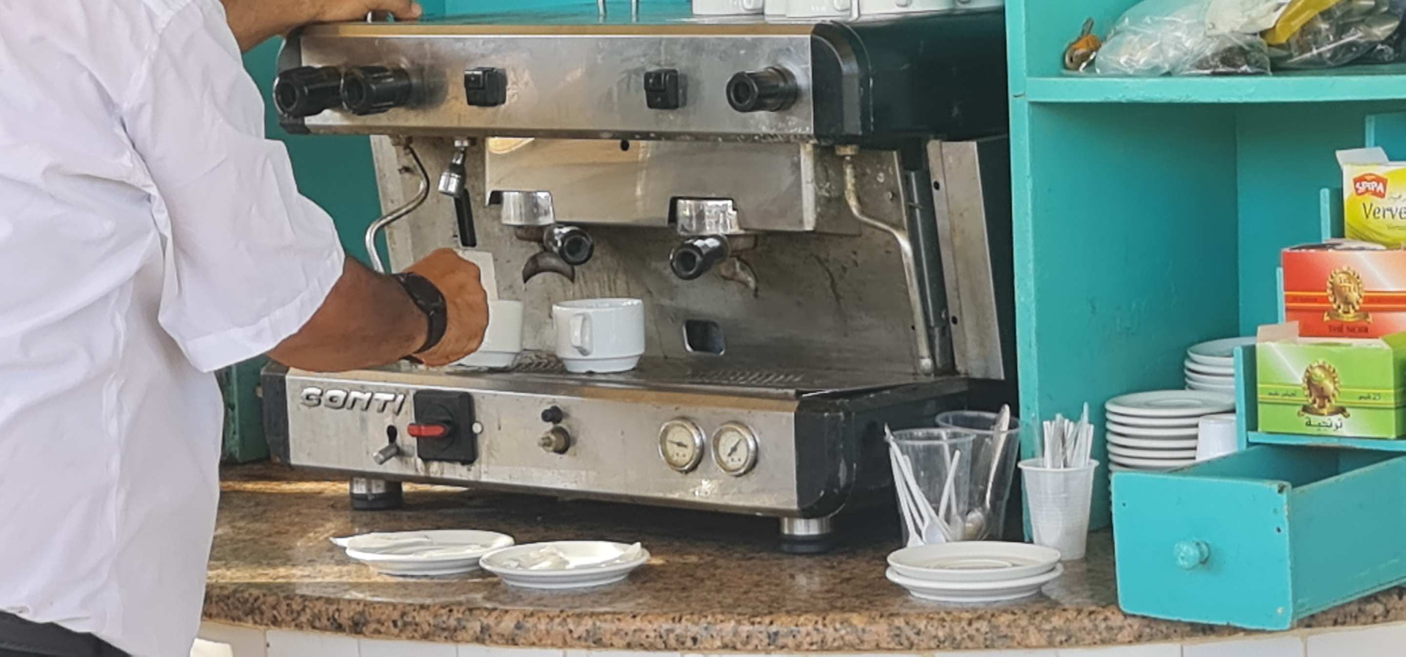 Poolbar. Sehr unhepflegt und dreckig. Kaffeemachine dreckig