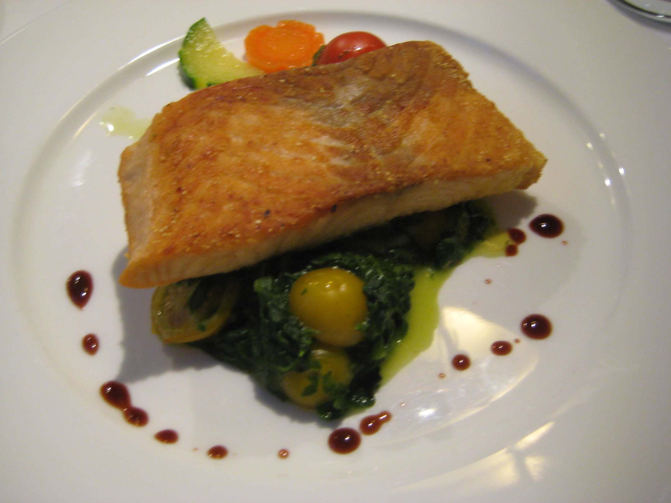 Gebratenes Lachssteak auf Tomaten-Blattspinat Kartoffelpüree