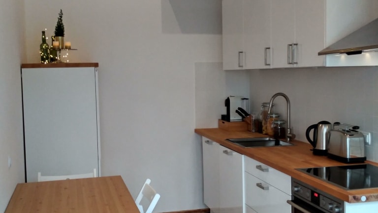 Das Apartment verfügt über zwei Zimmer mit einer voll ausgestatteten Küche, einschließlich Kühlschrank und Herd. WLAN und Kabel-TV sind ebenfalls vorhanden. Auf Anfrage können Babybetten zur Verfügung gestellt werden.