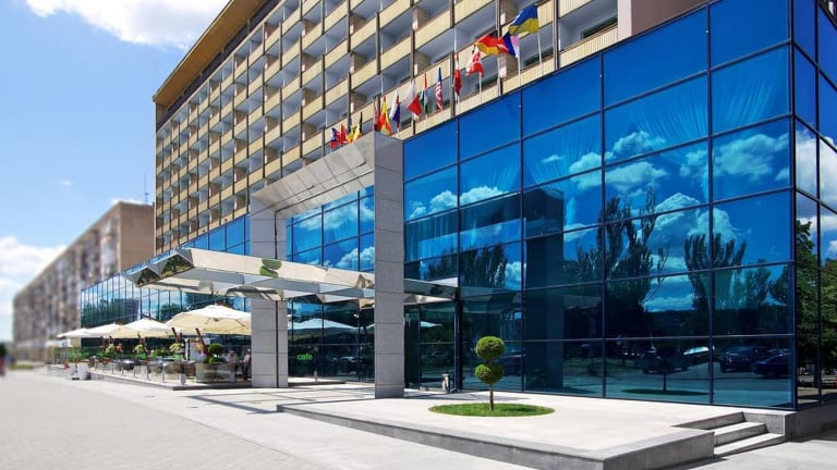 Das Intourist Hotel befindet sich im Zentrum von Saporischschja und liegt in der Nähe des Dnepr-Flusses. Diese zentrale Lage ermöglicht es den Gästen, die Stadt bequem zu erkunden und die Sehenswürdigkeiten in der Umgebung zu besichtigen. Die Insel Khortytsia, ein beliebtes Ausflugsziel, ist nur eine 12-minütige Autofahrt entfernt.