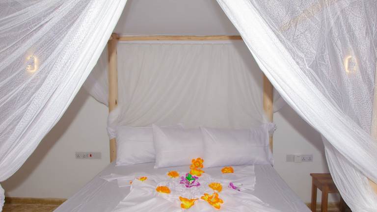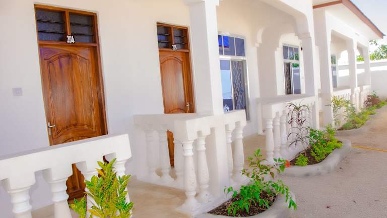 Das Oasis Beach Inn liegt in idealer Lage direkt am Strand von Jambiani. Hier können Sie das kristallklare Wasser und den feinen Sandstrand in unmittelbarer Nähe genießen. Die Umgebung bietet viele Möglichkeiten für Aktivitäten wie Wandern und die Erkundung des Jozani Forests, der nur 26 km entfernt liegt.