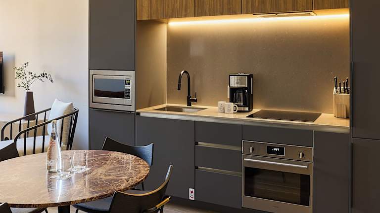 Die Zimmer im Sonder Apollon sind klimatisiert und verfügen über eine voll ausgestattete Küche mit Essbereich, Flachbild-TV und eigenem Badezimmer mit Badewanne oder Dusche. In den Zimmern finden Gäste einen Kühlschrank, Geschirrspüler, Ofen, Kaffeemaschine und Wasserkocher. Die Ausstattung bietet Bequemlichkeiten für einen komfortablen Aufenthalt.