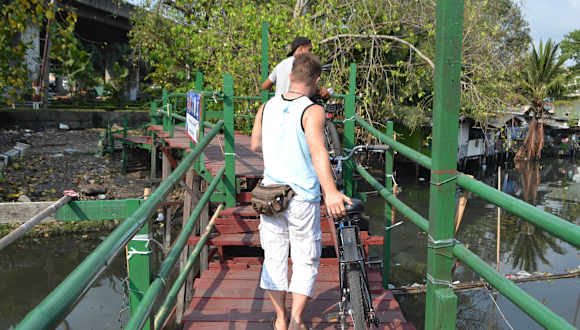 Hätte ich die Bewertungen auf HC schon von vorher gelesen, wären wir mit Sicherheit nicht auf die waghalsige Idee gekommen diese Tour mit unseren Kindern zu machen. Aber durch die Tourbeschreibung auf der Homepage und durch diverse Foreneinträge im Glauben gehalten, die Tour verläuft im 'Grünen', dachten wir es wäre ein netter und gemütlicher Familienausflug. Leider verläuft ein Großteil der Strecke über gefährliche Hauptverkehrsstrassen und selbst die Feldwege außerhalb der Stadt sind alles andere als kindersicher. Da heißt es auch als Erwachsener volle Konzentration. Leider nimmt der Tourguide keine Rücksicht auf langsamere Teilnehmer. So steht ein Großteil der Leute immer noch verschüchtert an der Strassenkreuzung, während der Guide auf der anderen Seite schon weiterzieht. Gruppen mit 14 Personen sind für sowas einfach viel zu groß. Von Bangkok selbst sieht man nicht viel. Interessante Märkte läßt man aus, dafür geht's ins Slum-Wohnzimmer. Ob man das wirklich so zur Schau stellen muss, ist natürlich fraglich. Preislich war die Tour ok, die Erwartungen wurden aber leider nicht erfüllt. Für Kinder finde ich die Touren gefährlich und nicht empfehlenswert!