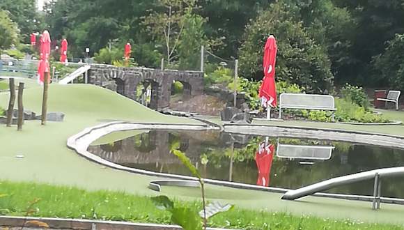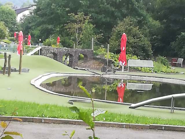 Am Ortsrand von Willingen - unter dem alten Aquädukt - findet man einen sehr schönen Minigolfplatz, der sich "Abenteuergolf" nennt. Er ist sehr schön angelegt und wirklich mächtig anspruchsvoll. Das eine oder andere Mal mußten wir unseren Ball aus dem kleinen Flüsschen fischen, welcher durch den Parcours fließt. Trotzdem auch für Kinder allein schon wegen der Atmosphäre absolut empfehlenswert.