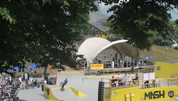 Das München MASH findet seit 2014 in München statt. Für mich ist dieser Event ein jährlicher Höhepunkt im Olympiapark. Im Jahr 2023 fand das München MASH vom 30.Juni – 2.Juli statt.Der Eintritt zu den Veranstaltungen ist kostenlos. In den letzten Jahren war Skateboard-, Wakeboard- und BMX-Sport auf dem Programm, heuer kam noch Streetdance dazu. Wakeboard ist ein Wassersportgerät in Form eines Brettes, mit welchem der Sportler gezogen durch ein Boot oder einen Lift auf dem Wasser gleiten kann. Streetdance ist kein einzelner Tanzstil, sondern ein Oberbegriff für verschiedene Tanzstile, die ihre Wurzeln auf der Straße und in den städtischen Milieus der USA haben. Bei allen Wettkämpfen waren internationale Top-Athleten am Start. Die Athleten zeigten eine Menge Trickse und ihre Runs waren sehr kreative. Das Publikum und auch ich war begeistert.