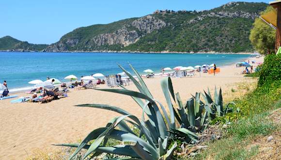 An der Nordwest Küste von Korfu, in der Nähe des Ortes Afionas, liegt der sehr schöne Agios Georgios Strand. In einigen Abschnitten des Strandes stehen die Liegen mit sehr grosszügigem Abstand und man geniesst dort einen ruhigen Strandtag. Das Wasser ist glasklar und lockt unweigerlich zum baden. Einige Tavernen sorgen für das leibliche Wohl.