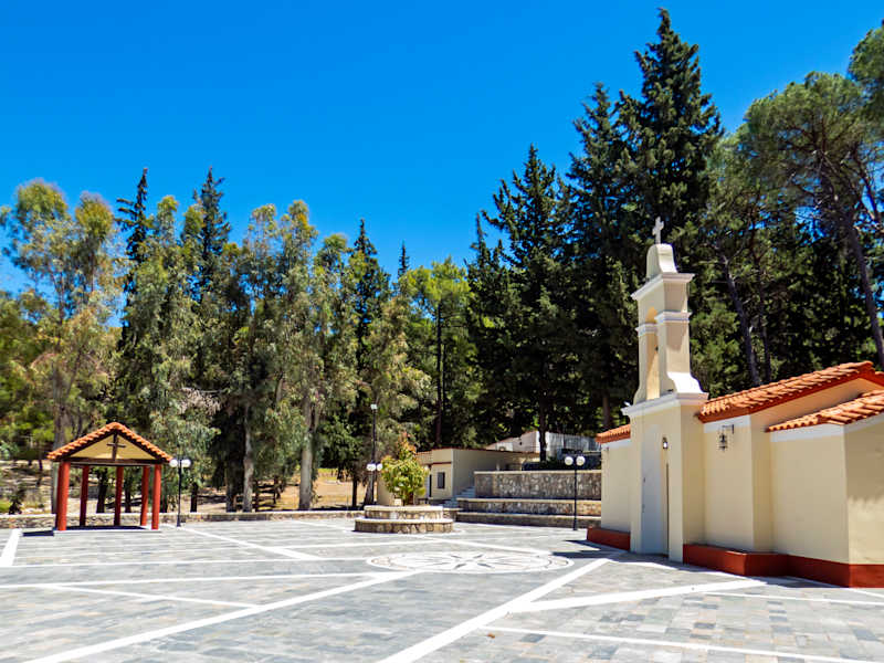 es handelt sich hier um eine Kleine Kapelle namens Agios Soulas inmitten eines großen Parkes. Hier finden verschiedene Veranstaltungen statt und dann hat auch das kleine Cafe geöffnet. Aber in der sonstiges Zeit findet man hier einfach Ruhe direkt an der Hauptverkehrsachse Eleousa - Fanes. Wenn man also einfach mal eine Ruhepause braucht, ist dies ein guter Zielort. Wer Katzen liebt wird hier von einem hungrigen Dutzend empfangen ;-)-
