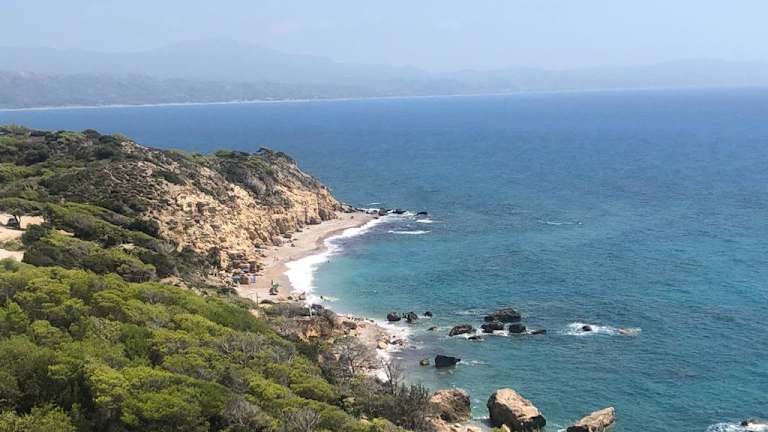 Auf dem Weg über die Berge kommt man an einer alten Kirche vorbei. Hier hat man tolle Aussicht aufs Meer. Dann den Weg weiter folgen und man kann zwischen 2 Stränden wählen. Bei uns war an beiden recht viel los. (August) Ist also kein Geheimtip mehr. Aber es lohnt sich
