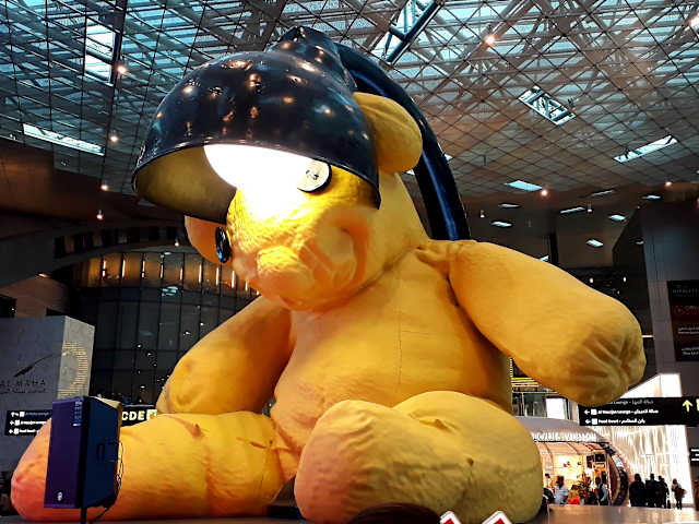 Die Al Maha Lounge Doha kann man mit dem Priority Pass kostenlos nutzen und ehrlich gesagt würde ich für eine Besuch noch nicht mal 1 Euro zahlen. Sie ist eigentlich permanent überfüllt und das Angebot sehr überschaubar. Eigentlich so gar nicht wie man es von Katar gewohnt ist und erwarten würde. Hinter dem großen Teddy im Rondell geht linksseitig die Rolltreppe hoch. Am Fuße der Rolltreppe ist aber i.d.R. schon eine riesige Warteschlange, die von 2 netten Damen abgefangen wird. Wartezeit teilweise 30 Minuten und mehr. Je nach Umsteigezeit lohnt ein Besuch dann sowieso nicht mehr. Hat man es tatsächlich reingeschafft, hat man wenig Essensauswahl und Alkohol gibt es auch nur sehr eingeschränkt. Ein Sitzplatz ist schwer zu finden und wenn man einen hat, sollte man ihn verteidigen. Für Raucher gibt es einen Raucherbereich der sich jedoch direkt neben dem Ruhebereich befindet. Für die ruhesuchenden Nichtraucher daher viel zu drubbelig und mit Rauchgeruch verbunden. Vorteil: Es gibt Wasserflaschen und Softdrink Dosen, mit denen man sich für den Weiterflug bevorraten kann.