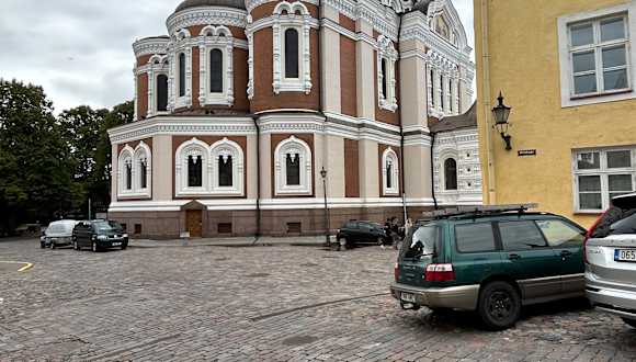 Die Kathedrale wurde 1900 erbaut, als Estland Teil des zaristischen Russlands war Symbol für die religiöse und politische Vorherrschaft des Reiches. Die Kathedrale steht gegenüber dem Palast auf dem Domberg an der Stelle, wo sich vorher eine Statue von Martin Luther befand – ein weiteres Symbol. Es ist ein spektakuläres Gebäude mit fünf Zwiebeltürmen und einer opulenten Ausstattung im Inneren, vor allem zahlreiche Ikonen, die in St. Petersburg auf Kupfer- und Zinkplatten gemalt wurden.