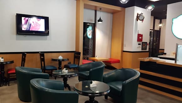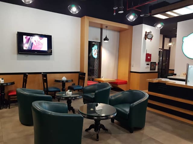 Schöne kleine Café neben Hotel ROSE RAYHAAN ROTANA . Leckere Eiscafé und Kleinigkeiten zum essen. Zu dem Zeitpunkt Juli war der Café bis 03:00uhr Nachts offen. Personal ist nett , sprachen Englisch. Preise sein ok für Dubai.